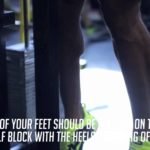 The proper form: Leg press. Choose your weight. Place legs on platform shoulder width stance. Lower safety bars holding the platform. Press and fully extend the platform. Inhale, then slowly lower the platform until your upper and lower legs make a 90-degree angle. Pushing mainly with the heels of your feet and using the quadriceps go back to the starting position as you exhale. Repeat to your recommended sets and repetitions.